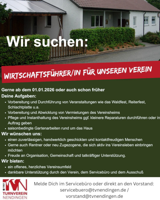 Bitte melde Dich! Rufe im Servicebüro an oder schreibe an servicebuero@tvnendingen.de