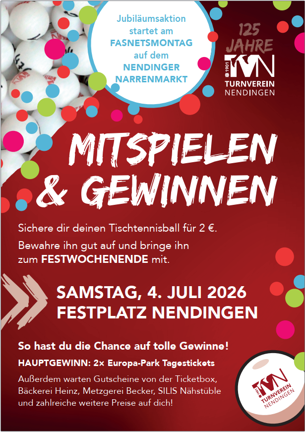 Wir freuen uns auf Euer kommen und sichert Euch mit einem Glücksball, Eure Chance auf einen Gewinn an unserem Jubiläum.