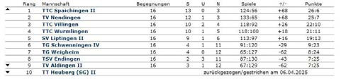 Niederlage. Es folgten weitere hohe Siege. Am vorletzten Spieltag gab es ein unerwartetes Unentschieden gegen den TSV Endingen. Der erste Platz war nicht mehr zu erreichen. Am Ende stand der zweite